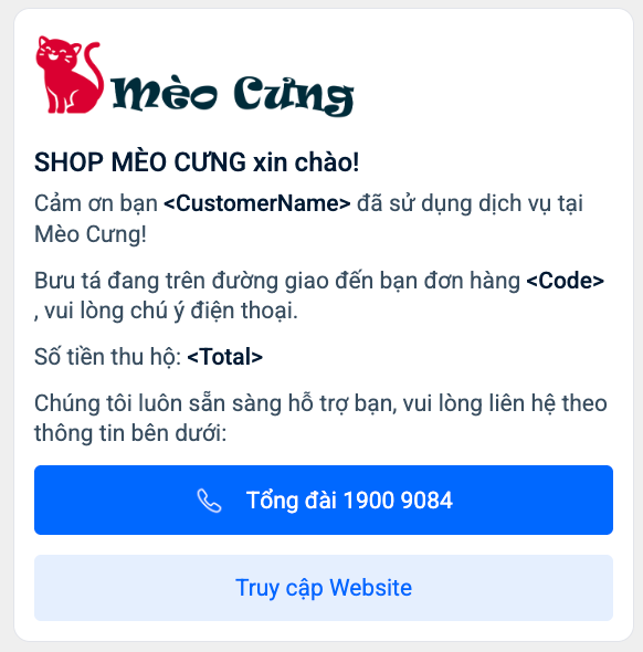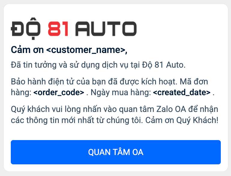 Nội dung được gửi tự động sau một khoảng thời gian từ khi đơn hàng hoàn tất.. Doanh nghiệp có thể nhận đc thông báo ngay lập tức khi có phản hồi xấu để xử lý kịp thời